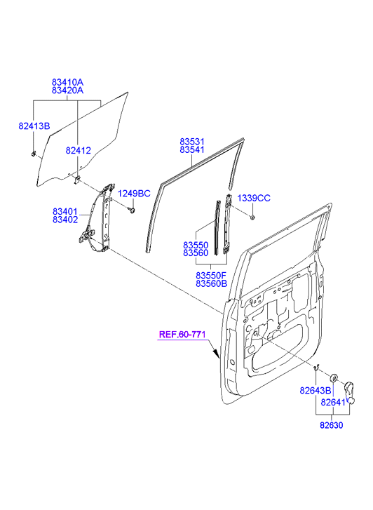 | 17 | 835404F000 | RUN ASSY-RR DR WDO GLASS RH |