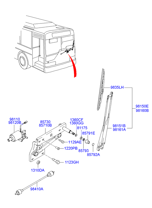 8981508C101ДЕРЖАТЕЛЬ ЩЕТКИ СТЕКЛООЧИСТИТЕЛЯ, ЗАДН., ЛЕВ